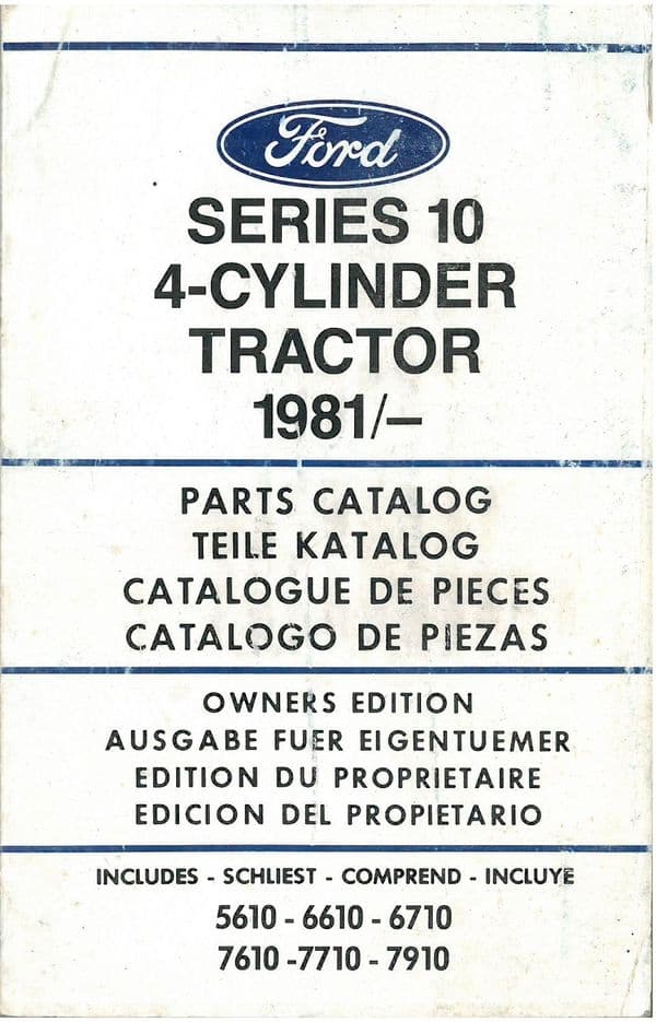 Ford Tractor Series 10 4 Cylinder 1981 Includes 5610 6610 6710 7610 7710 7910 Parts Manual